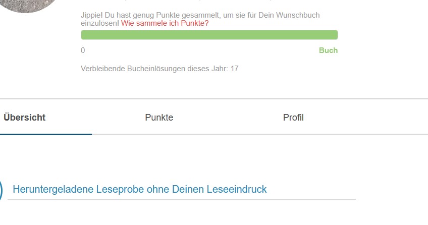 Nur meine Meinung… aber ich finde 20 Bücher viel und ich schätze an Vorablesen, dass es einem relativ einfach gemacht wird Punkte einzulösen. Auf anderen Plattformen weiß man gar nicht genau, wann Prämien überhaupt online kommen und Punkte sammeln ist auch schwieriger bzw. gibt es genug Plattformen ohne Prämien.