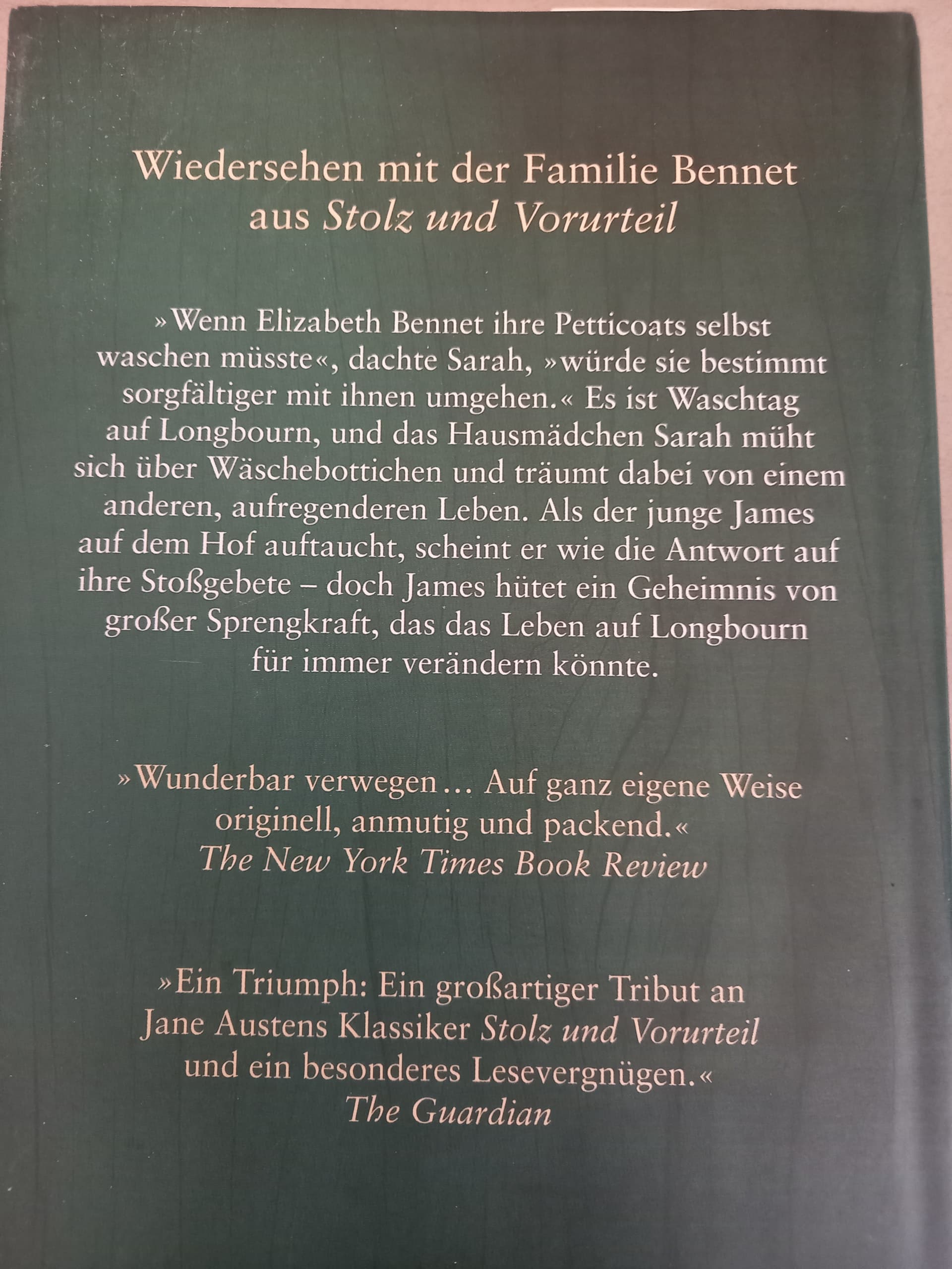 Ich habe das Buch nun endlich zu Ende gelesen. Wie beavielleser geschrieben hat, empfand ich den 2. Teil auch zäher. Dennoch hat es mir gefallen. Janes Kritik an der Gesellschaft liest sich hier wunderbar raus. Am meisten hat mir der Humor von Mr Bennet gefallen.