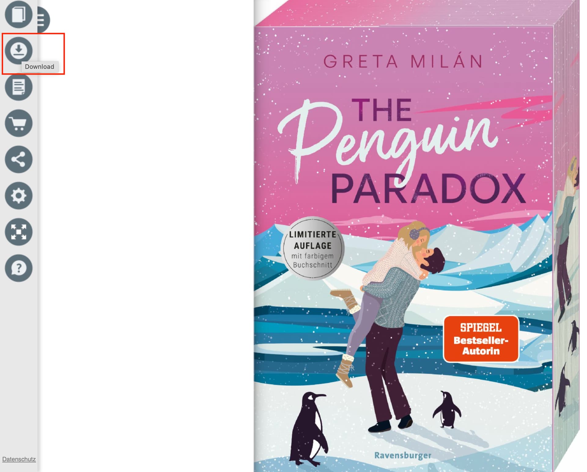 Bei der LP zu Till the End of the Moon 1 hab ich das auch, dass die Leseprobe wie eine Ebene über die Seite gelegt wird. Von da aus kann ich dann zu einer „Bookwall“ mit weiteren LP, eine Download-Option wird mir nicht angezeigt.