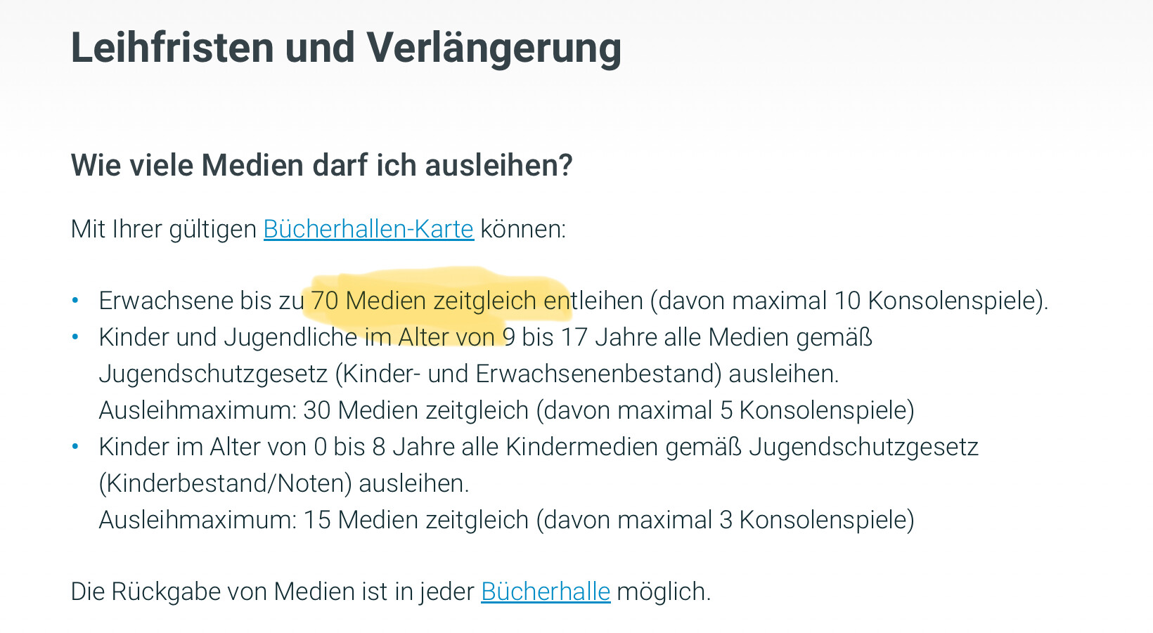 Ausleihmaximum: 70 Medien + eMedien