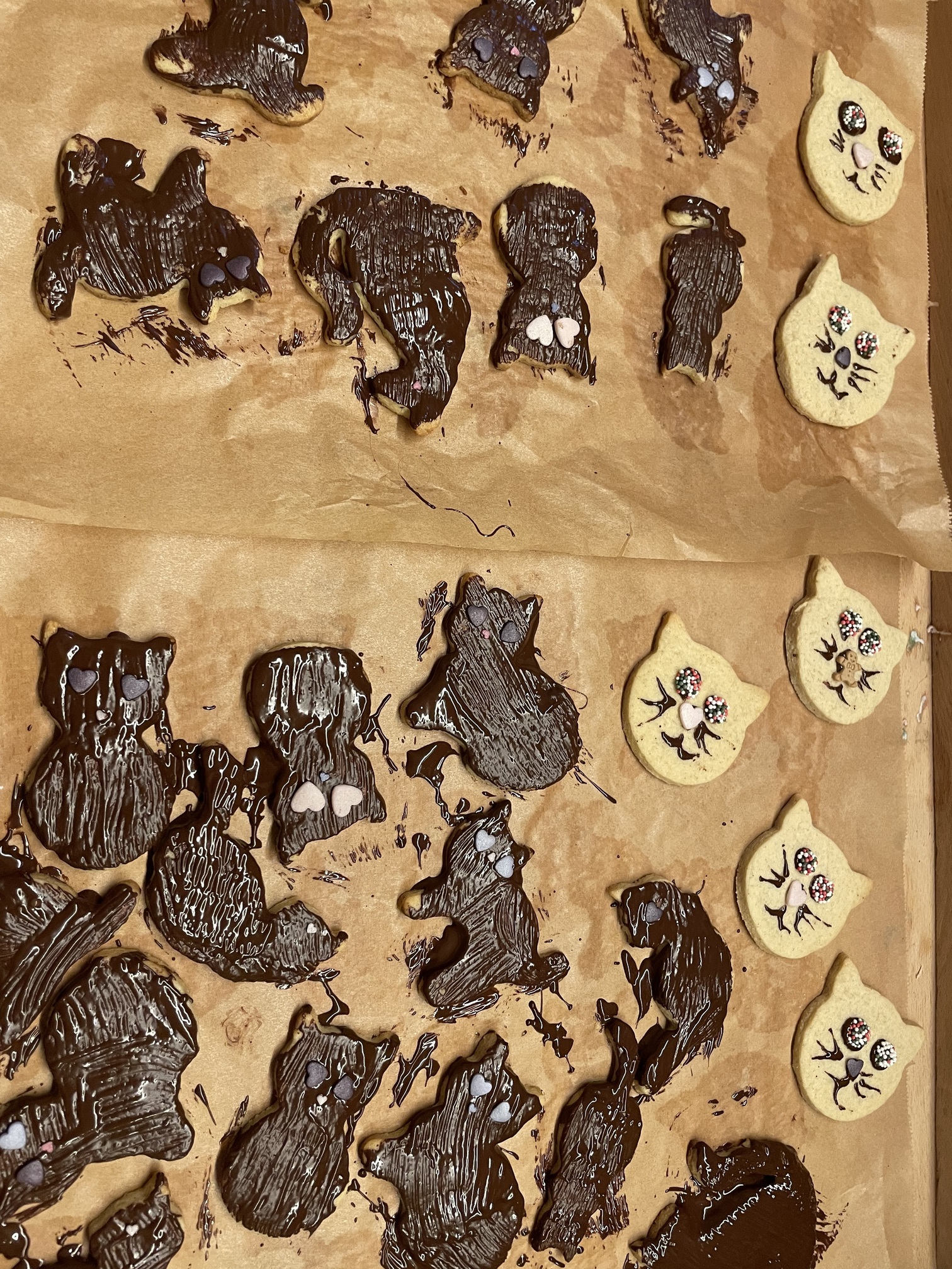 Mein Allzeit-Favorit sind vegane Vanilleplätzchen (keine Kipfel), die ich in diesem Jahr mit selbst gemachten Pfötchenstempeln verziert habe. So erkennt jeder, dass sie aus einem Katzenhaushalt stammen.