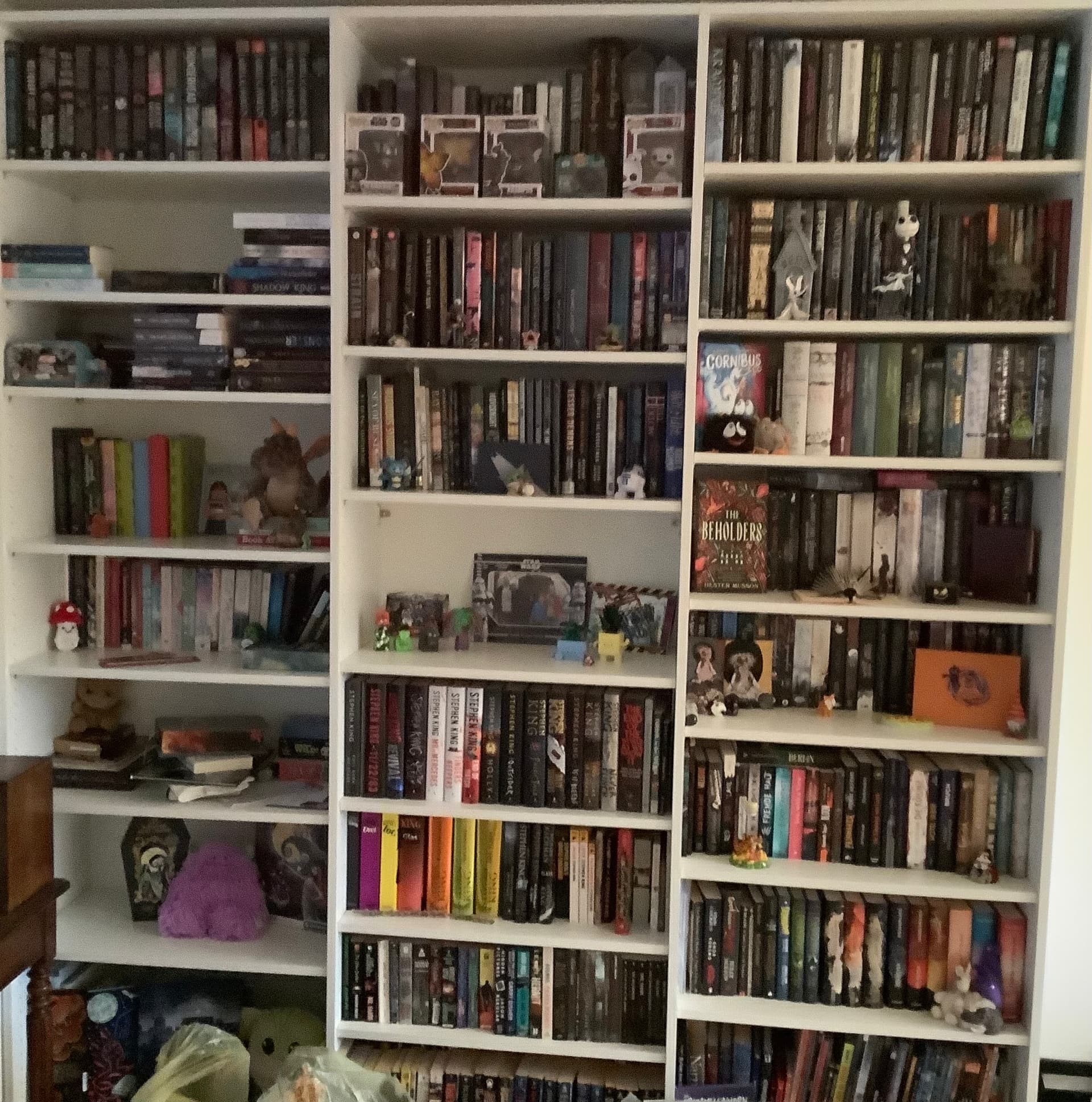 Und ich dachte schon nur bei mir sieht es so aus! Danke dafür dass ich mich mit meinem Chaos-Bücherregal nicht mehr alleine fühle