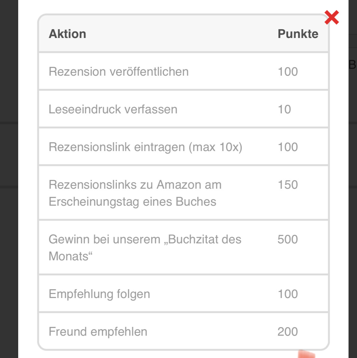 Es geht darum, dass Leute sich aufgrund deiner Empfehlung (zum Beispiel via Mail) bei vorablesen anmelden. Da steht ein Code dabei- den sollten die Leute angeben, damit du die Punkte bekommst.
