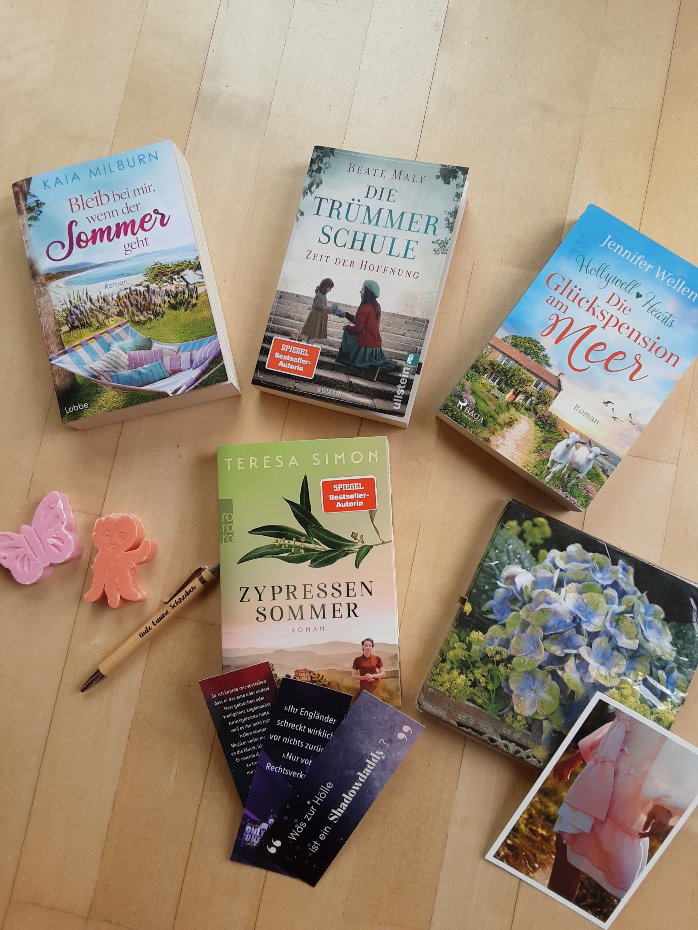 Die „Trümmerschule“ habe ich mir schon sooo lange gewünscht, mein absoluter Favourite! „Bleib bei mir, wenn der Sommer geht“ und „Die Glückspension am Meer“ hast Du bestens auf meiner erweiterten ellenlangen Wunschliste erstöbert, die werden mich in einen tollen Sommer begleiten! Der „Zypressensommer“ subt bereits bei mir, aber ich kann mit diesem tollen Buch auf jeden Fall eine Freundin erfreuen, Deine Wahl war daher allerbestens!