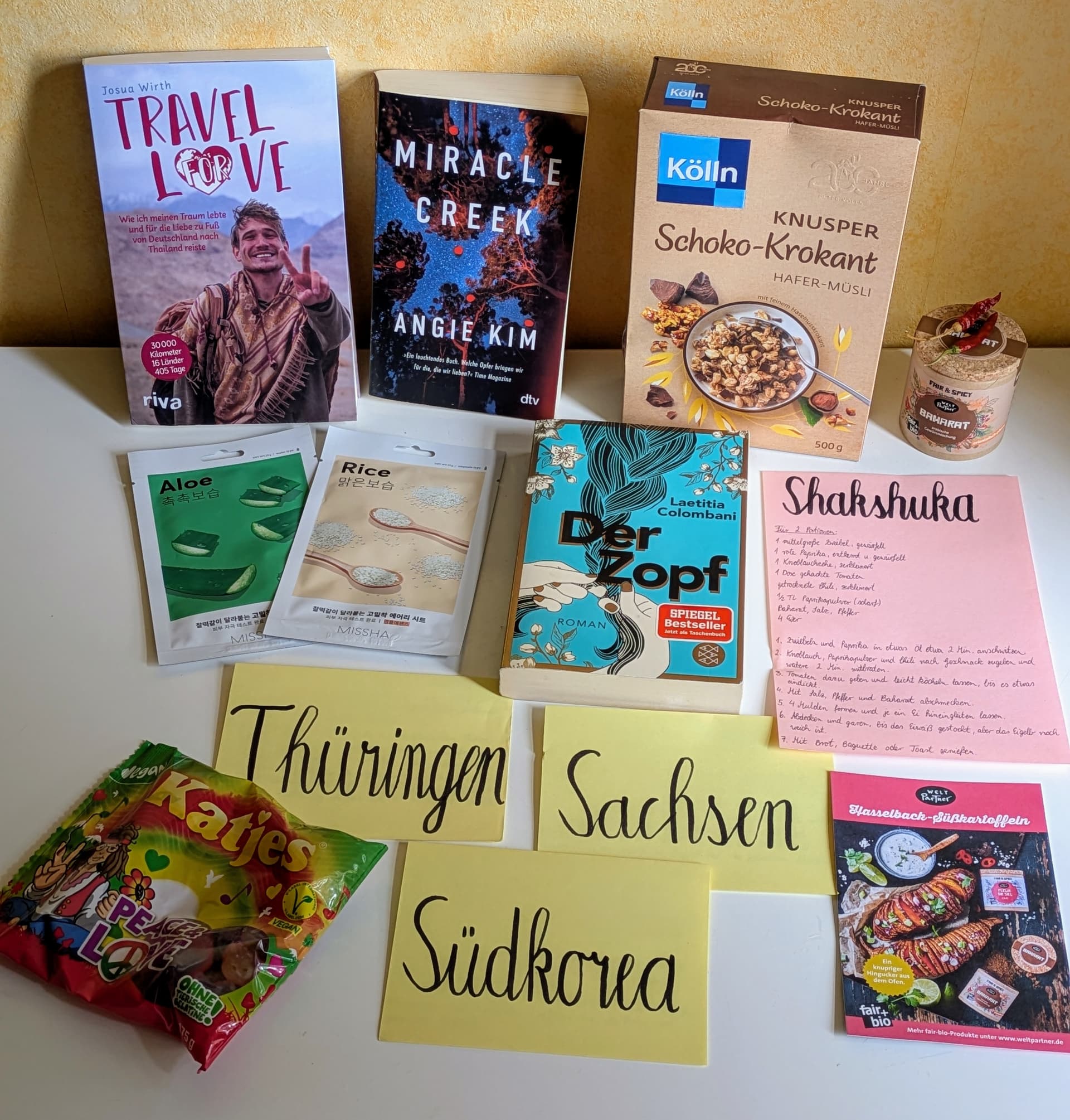 Mit dem Überraschungsbuch („Der Zopf“) habe ich schon länger geliebäugelt, aber irgendwie hat es sich nie ergeben. Die Aufteilung des Kartons war ebenso toll wie der Inhalt! Die Rezepte und Tipps sind super (v.a. die Farbberatung in Seoul! Was für eine schöne Handschrift