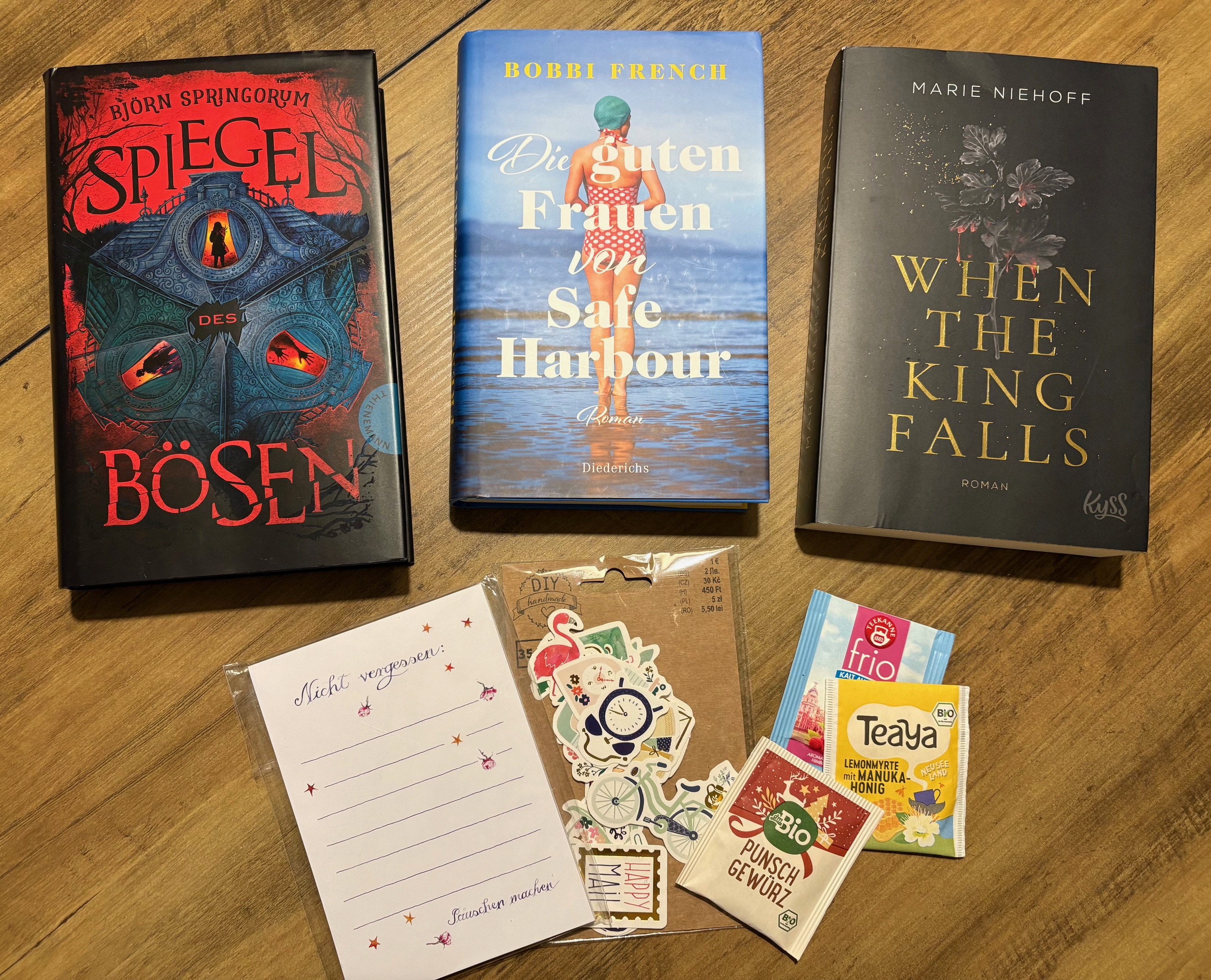 Gestern hat mich das Bücherpaket erreicht und ich konnte schon darin stöbern. Diese Bücher dürfen bei mir bleiben, inklusive Zusatzbücher. Danke auch für die Beigaben. Sobald ich die Adresse von Schneestern2 habe, macht sich das Paket auf die Weiterreise. Es war schön, dabei zu sein ![]()