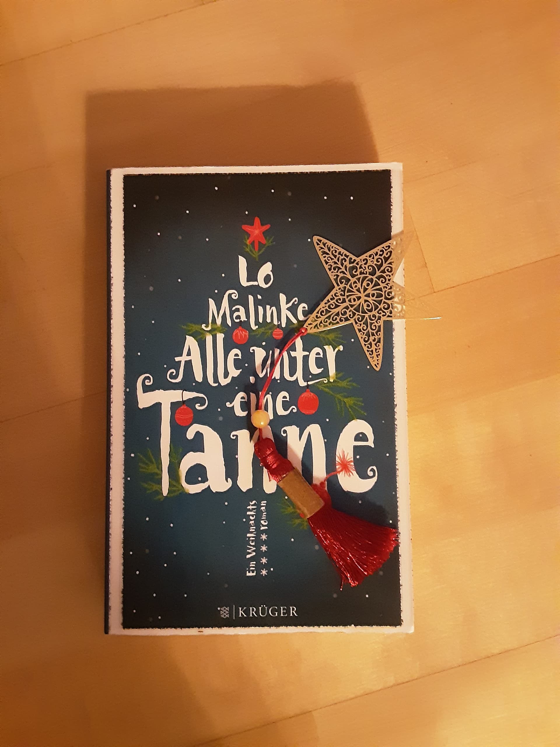 Uff, jetzt kann ich aufatmen. Ich hatte schon Angst, mein Papierstern würde durch die schweren Bücher evtl. zerdrückt. Aber er scheint den Transport gut überstanden zu haben.