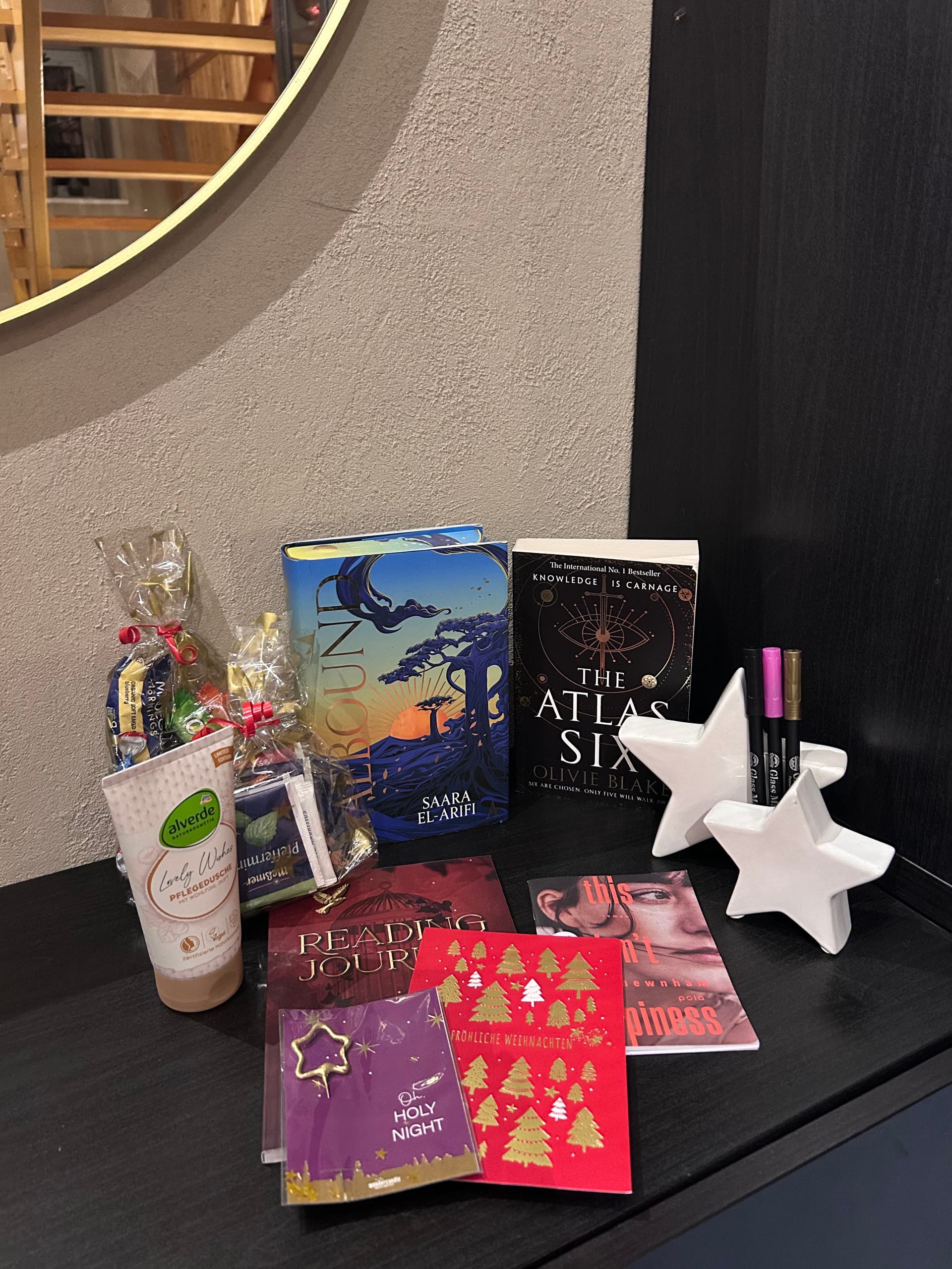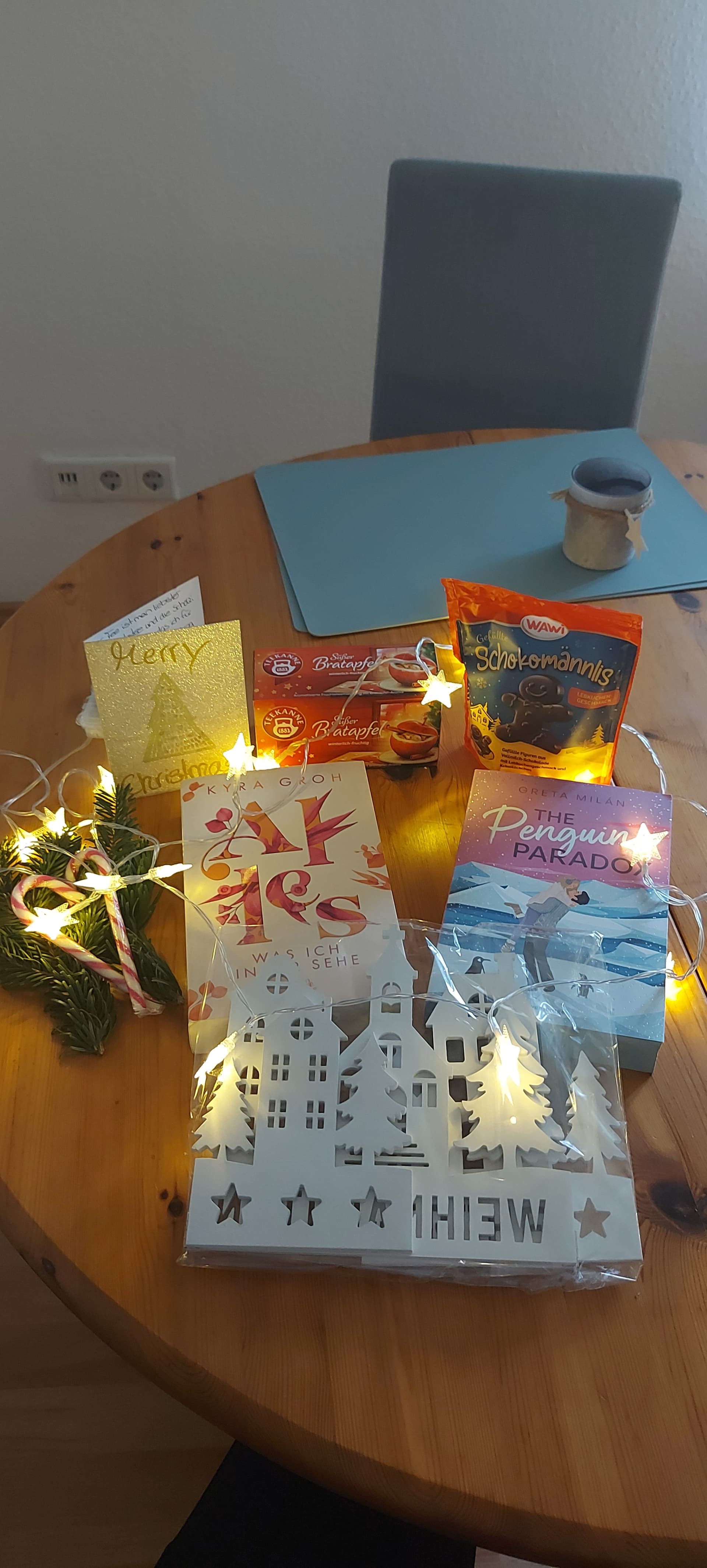 und eins vorab, ich habe mich so sehr über alles gefreut! Ich habe ein tolles Wunschbuch erhalten und eine super Empfehlung aus dem Schränkchen der Wichtelmama. Für 2026 habe ich mir vorgenommen, mich auch an englischsprachige Bücher zu wagen… Wenn ich nun sogar eins zu Hause habe, dann wird das auch zu 100% klappen. Das passt also wirklich super!