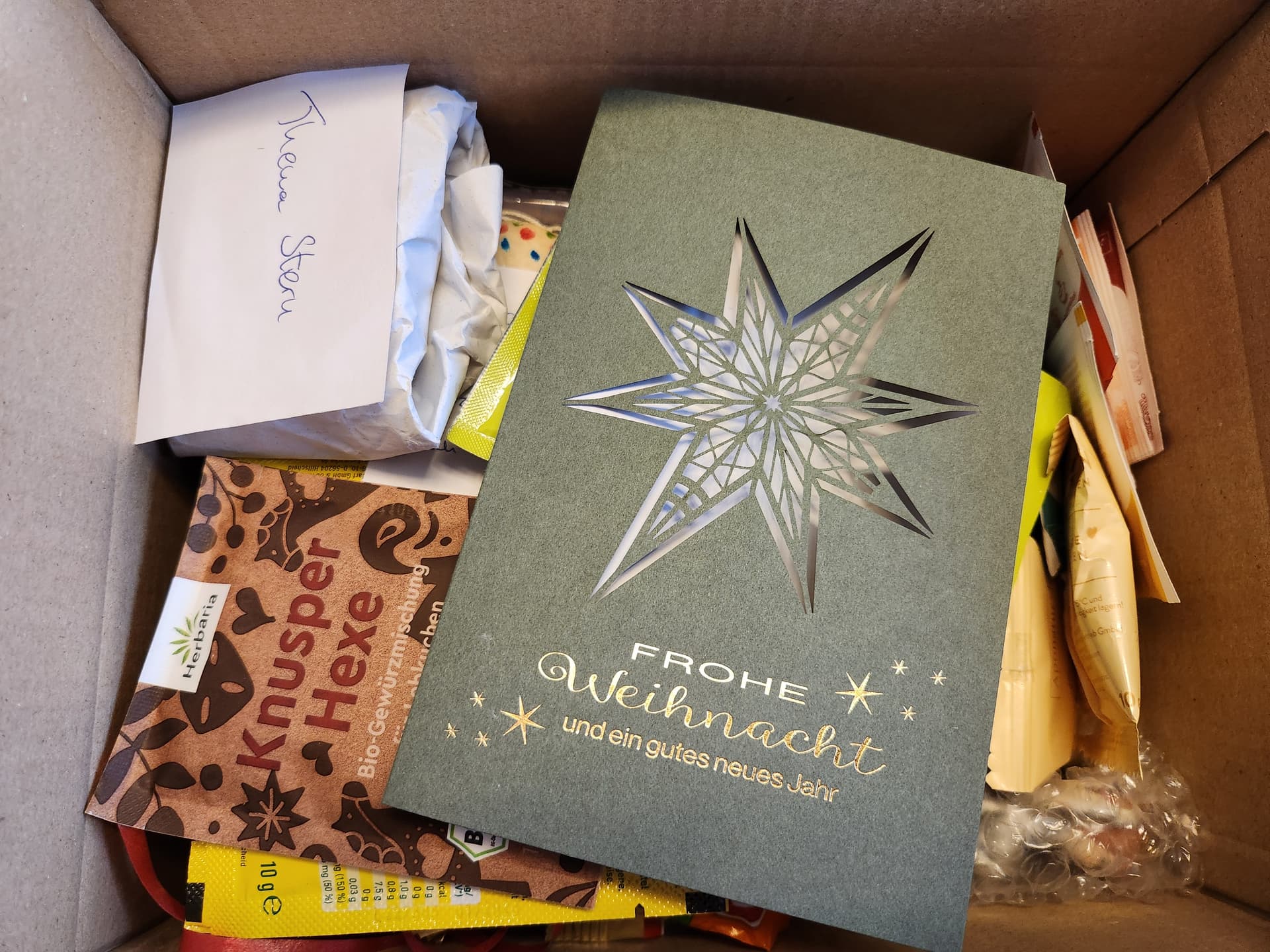 Das Paket hat meine Erwartungen absolut übertroffen. Ich habe mich rießig gefreut und einen kleinen Freudentanz unterm Weihnachtsbaum veranstaltet.