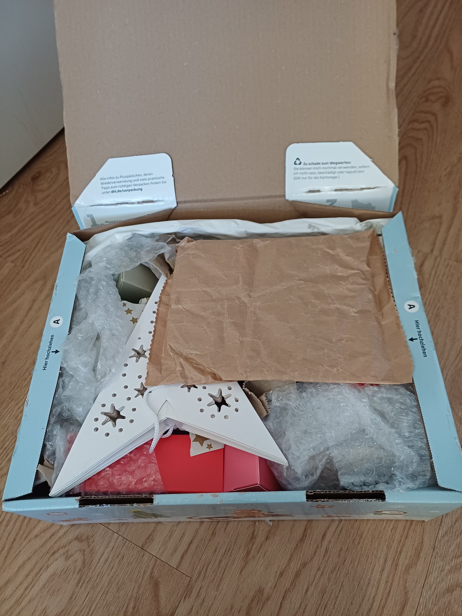 Der Inhalt ist vollständig bei Dir angekommen und ich hoffe, dass wenigstens der Inhalt heile angekommen ist.