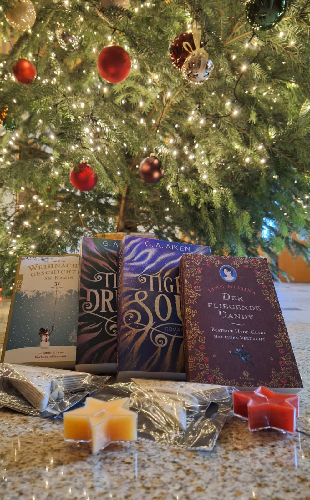 Ich war sehr gerührt wie viel Liebe in mein Paket gesteckt wurde, sogar noch zwei Extra-Bücher, die mich total überrascht haben. Das hat mich wirklich sehr gefreut und wird mir die Feiertage doppelt so sehr versüßen! Ich kann es gar nicht erwarten mit dem Lesen anzufangen. Auch vielen Lieben Dank für die Süßigkeiten und besonders die schönen Sterne! Dankeschön! Ich hoffe nur, dass mein Päckchen genauso viel Freude bringt.